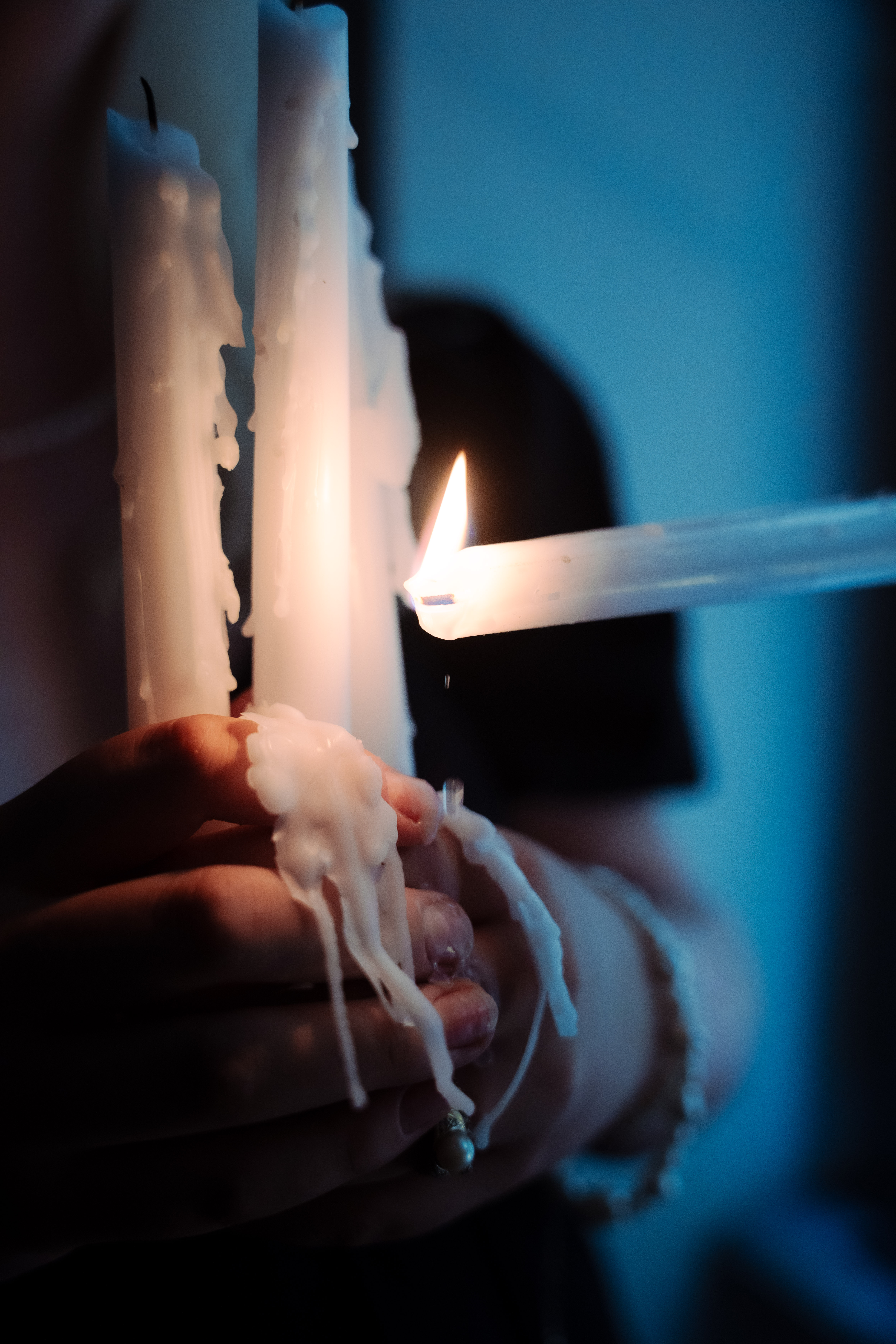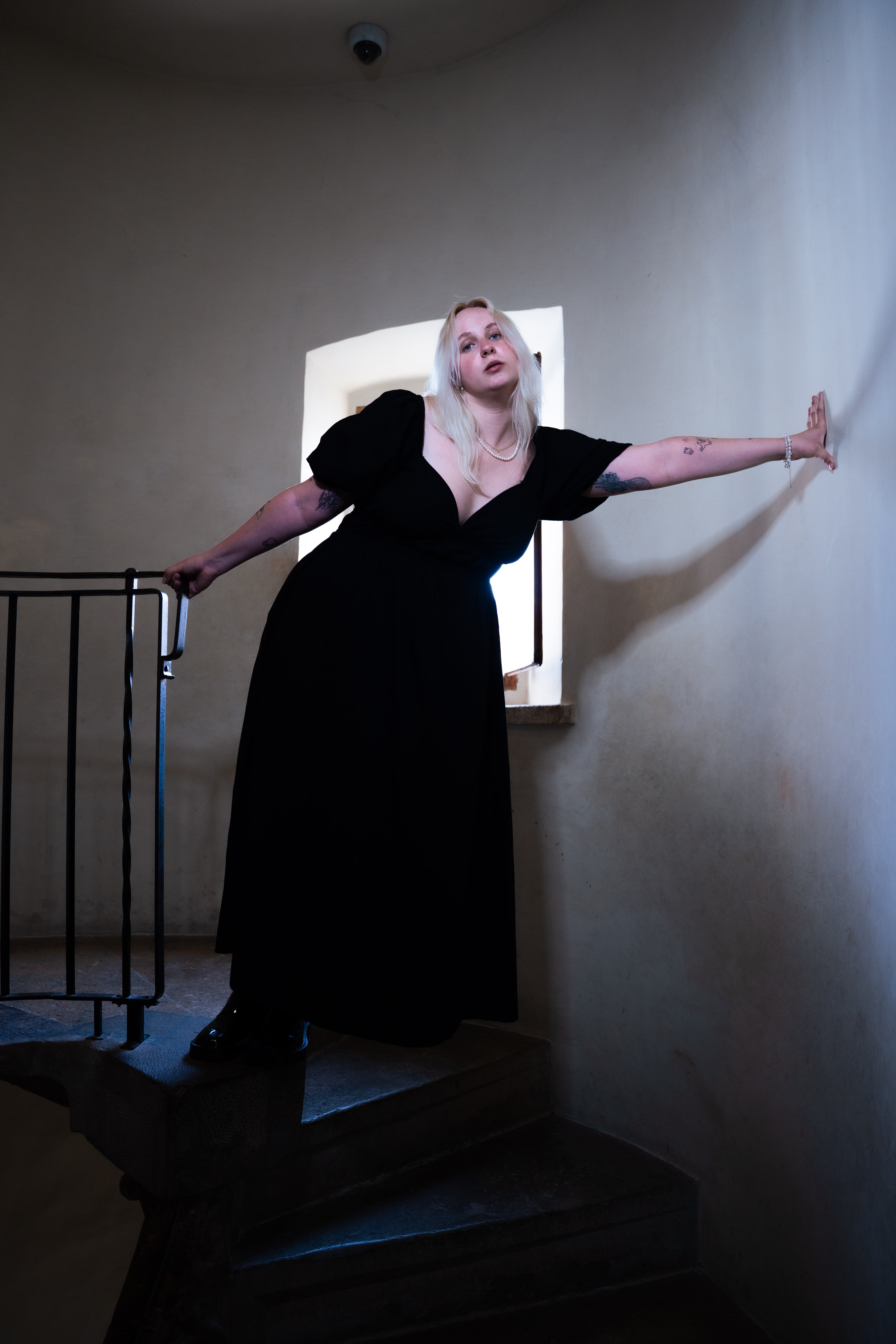 Bei dem Fotoshooting „Fluid Thoughts“ wurde eine Art dieser sogenannten intrusiven Gedanken aufgegriffen und ästhetisch eingebaut. Hierzu wurden Kerzen, heißes Wachs und Feuer explizit sehr unkonventionell verwendet. Der Begriff „fluid“ im Titel wird durch das flüssige, heiße Wachs, das in diesen Bildern verwendet wurde, unterstützt. Die Kulisse der Doppelwendeltreppe ist bewusst gewählt, da diese zusätzlich das Ungewöhnliche und Außergewöhnliche in dieser Fotoreihe unterstreicht.